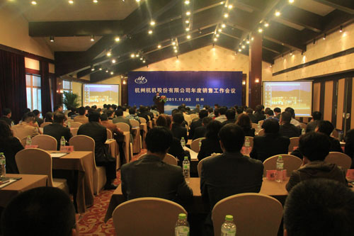 11月3日,杭機股份有限公司2011年度銷售工作會議于杭州藍天·清水灣國際大酒店舉行,今年的會議主題是:“讓我們攜手——共同驅走這個嚴冬,迎接市場春天的到來”。 來自全國各地的60多家經銷公司的代表參加了會議。