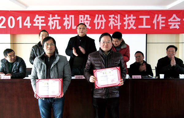 杭機股份2014年科技工作會議暨公司首屆科技節(jié)于2月14日舉行。此次2013年度科技創(chuàng)新成果進行了表彰,共表彰了科技創(chuàng)新獎12項和節(jié)約獎17項。科技創(chuàng)新獎包括新產(chǎn)品開發(fā)獎6項、工藝技術(shù)創(chuàng)新獎2項和申請專利獎4項。公司高層為獲獎?wù)叽眍C發(fā)了榮譽證書。