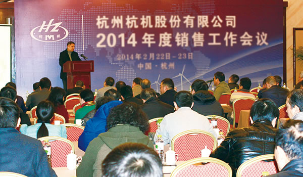 杭機(jī)股份2014年度銷售工作會(huì)議于2月22日—23日在杭州藍(lán)天清水灣國(guó)際大酒店舉行,來(lái)自全國(guó)各地的五十多家經(jīng)銷公司的近80名代表參加了會(huì)議。