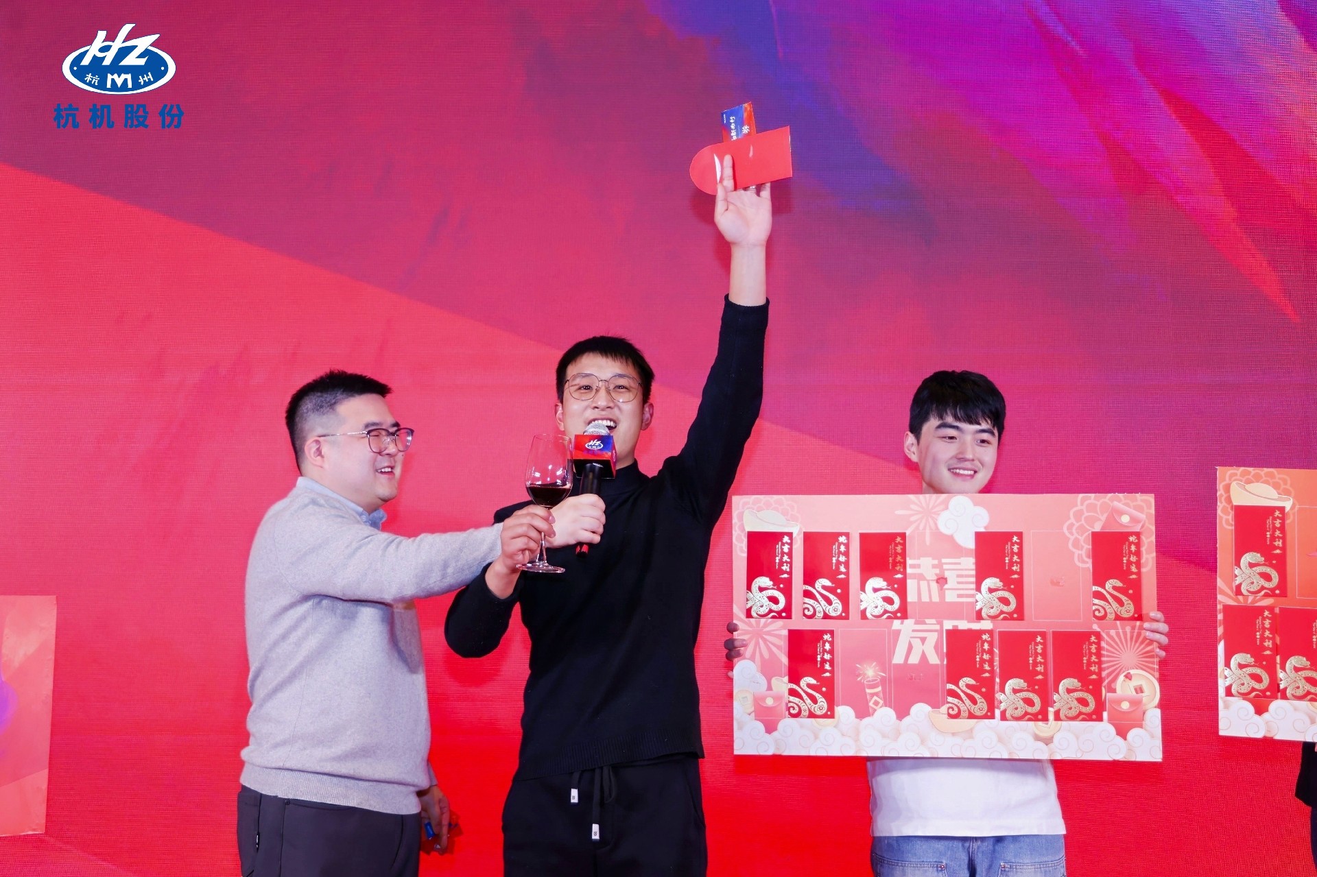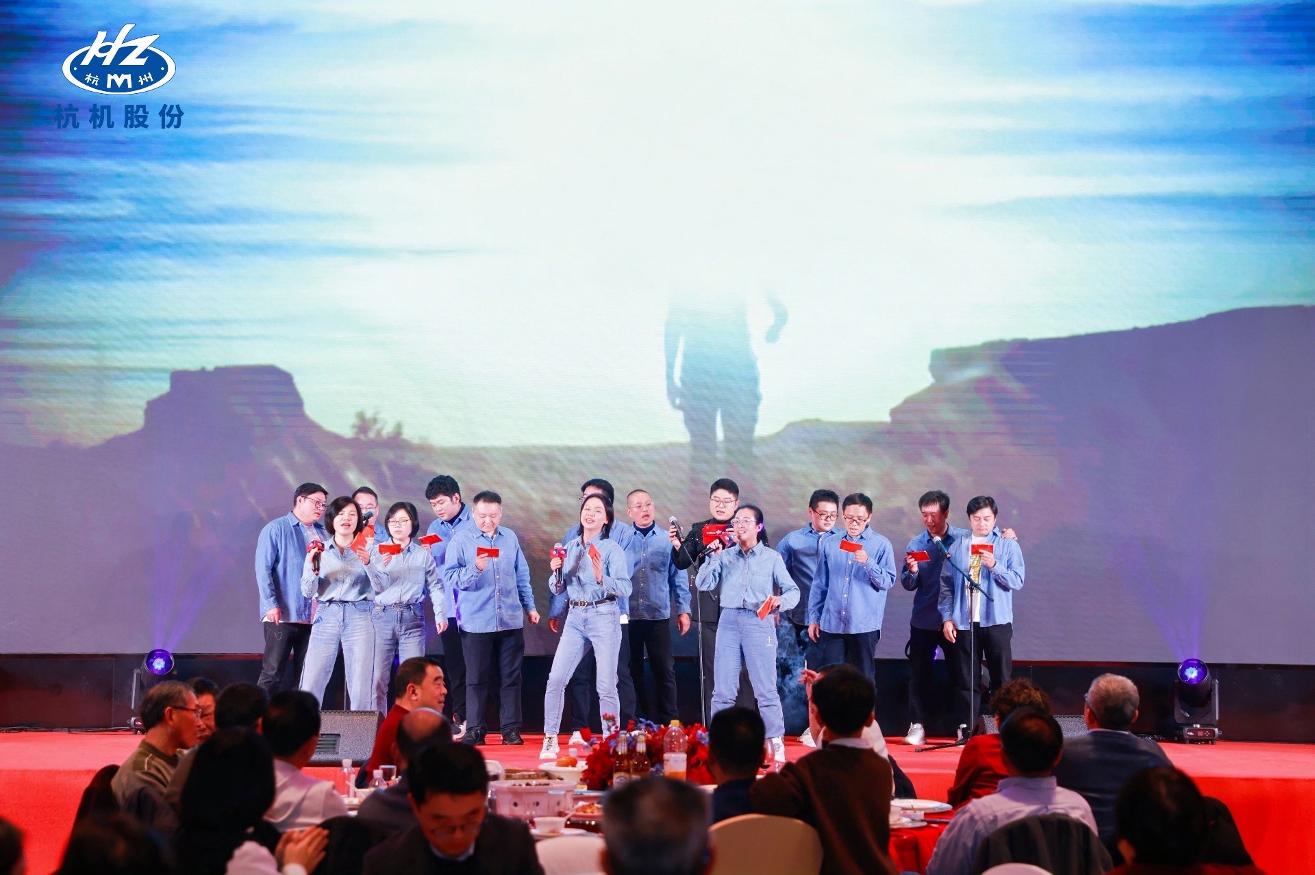 晚宴中杭機股份董事長于立鵬先生致祝酒辭,并攜杭機股份全體董事會成員及經(jīng)營班子共同上臺祝酒。于董首先對過去一年關(guān)心支持杭機發(fā)展的各級政府與全體杭機家人們表示感謝,并強調(diào)杭機一直以來是一個有文化認同,有傳承精神的企業(yè)。展望新的一年,我們將會繼續(xù)發(fā)揚杭機精神,緊緊抓住新的發(fā)展機遇,不斷提升管理水平,加大技術(shù)創(chuàng)新投入,拓展市場渠道,為社會貢獻更多精品、為股東創(chuàng)造更多價值,為員工提供更好的發(fā)展平臺和福利待遇,團結(jié)一心,攜手共進,共同開創(chuàng)杭機更加美好的明天!牢筑發(fā)展基石,踏上新的征程,向新而行,向上而行!