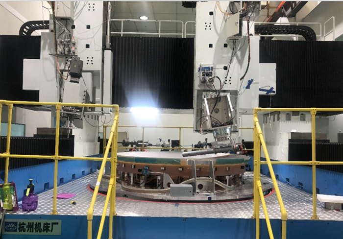 浙江杭機(jī)股份有限公司(簡(jiǎn)稱“杭機(jī)股份”)研發(fā)的大口徑光學(xué)元件超聲銑磨拋成套裝備,采用橋式框架移動(dòng)式結(jié)構(gòu)布局,具有高剛性、高精度及強(qiáng)大的多手段揉合功能,配置超精密閉式靜壓回轉(zhuǎn)工作臺(tái),可自由統(tǒng)配超精密靜壓主軸、超聲刀柄、磨拋頭、應(yīng)力盤、磁流變組合及搖臂式輪廓度儀等關(guān)鍵部件,設(shè)備配置有尋邊定位系統(tǒng),可快速定位光學(xué)元件坐標(biāo),提高工作效率。設(shè)備可對(duì)3米級(jí)光學(xué)元件進(jìn)行超精密銑磨加工、多自由度快速研拋及高精度測(cè)量,完成光學(xué)元件磨削、研拋、精拋、檢測(cè)、確定性修形的全部加工工藝。